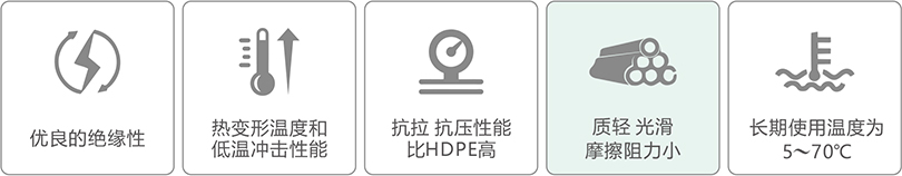 非開挖改性聚丙烯(MPP)保護管是以改性聚丙烯為主要原料,采用特殊配方和加工工藝制造的新型塑料管道,具有強度高、耐溫性能好、穿放電纜容易、施工簡便、節(jié)省費用等一系列優(yōu)點。